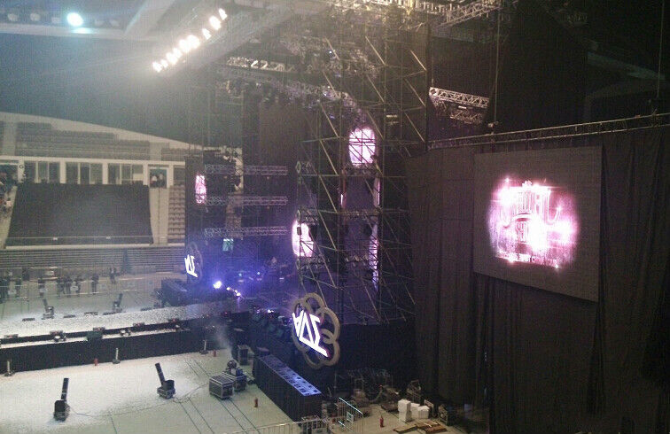 首先介绍的是音箱系统,在这一次BEAST《BEAUTIFUL SHOW IN CHINA 2015-2016》巡回演唱会广州站中,主扩音箱采用了L-Acoustics V-DOSC双十五寸线阵列音箱和L-Acoustics dV-DOSC双八寸线阵列音箱组成;