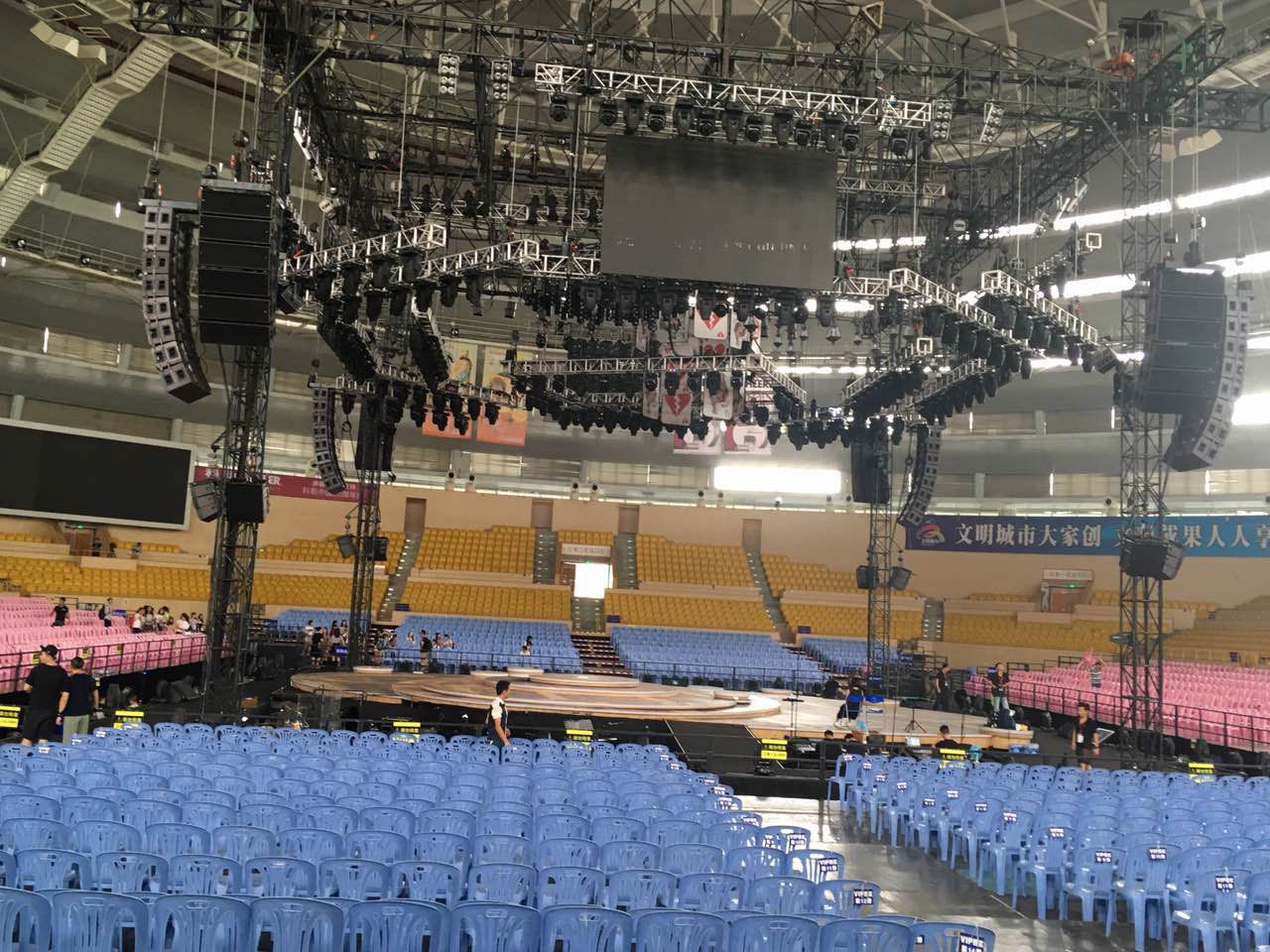 现场音响系统采用了L-Acoustics V-DOSC双十五寸线阵列音箱作为主蝴蝶成人午夜视视频的主扩音响,