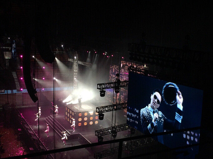 主扩音箱采用了L-ACOUSTICS V-DOSC双十五寸线阵列音箱和L-ACOUSTICS dV-DOSC双八寸线阵列音箱组成。
