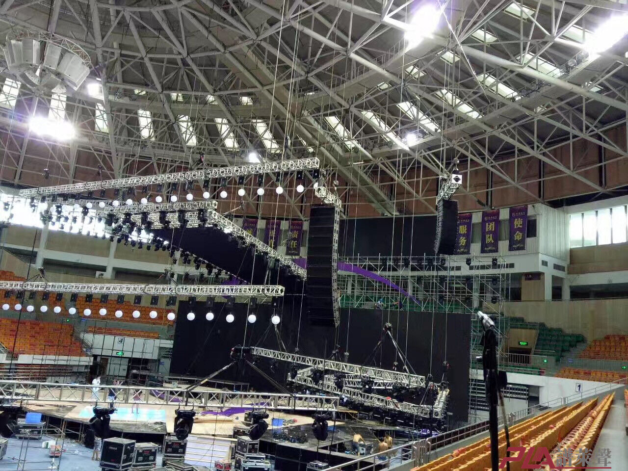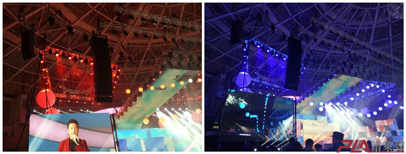 主扩音箱:采用了线声源阵列鼻祖的法国扬声器品牌L-ACOUSTICS  V-DOSC  双十五寸线阵列音箱.