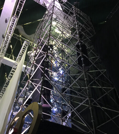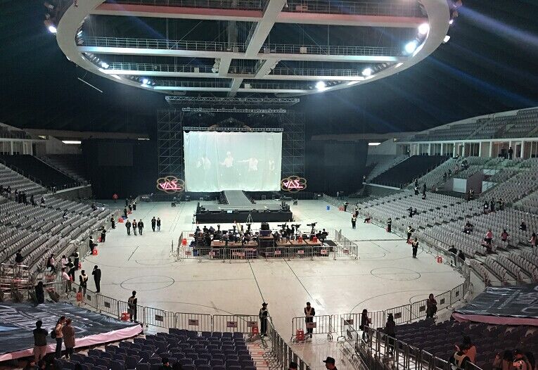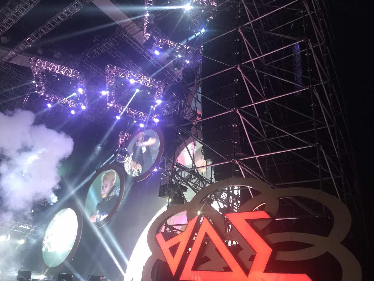 首先介绍的是音箱系统,在这一次BEAST《BEAUTIFUL SHOW IN CHINA 2015-2016》巡回演唱会广州站中,主扩音箱采用了L-Acoustics V-DOSC双十五寸线阵列音箱和L-Acoustics dV-DOSC双八寸线阵列音箱组成;
